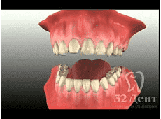 При истертости зубов.